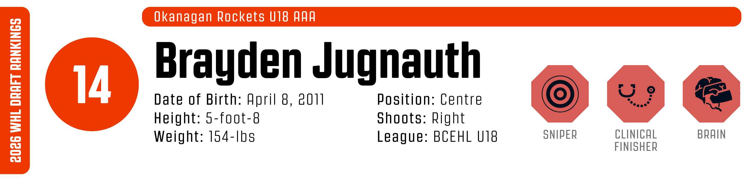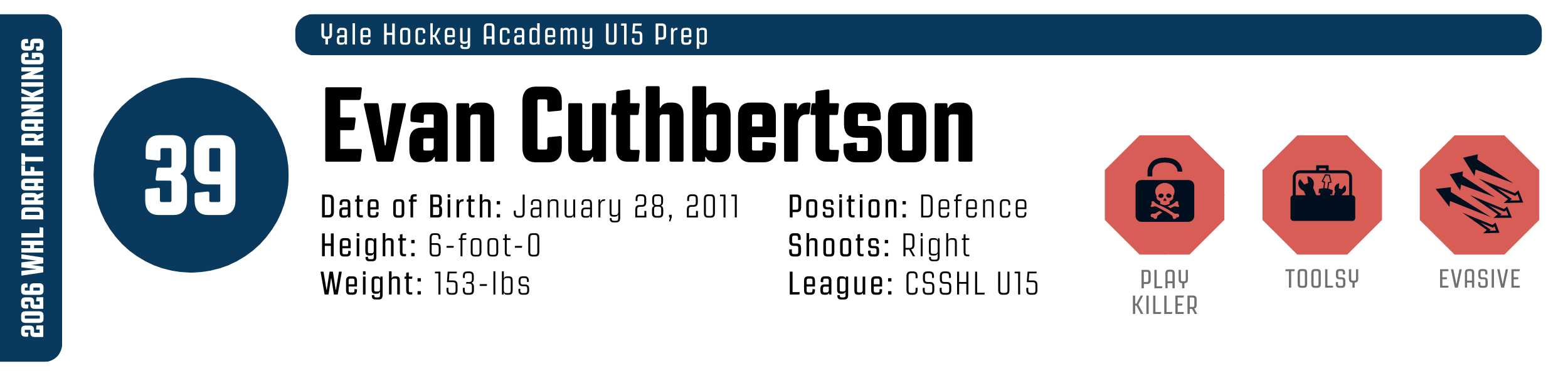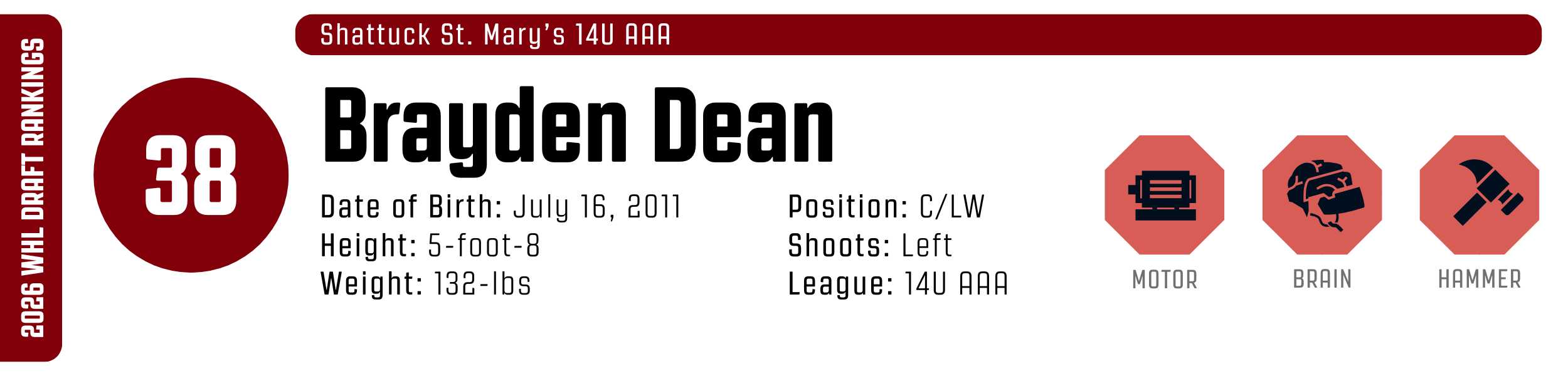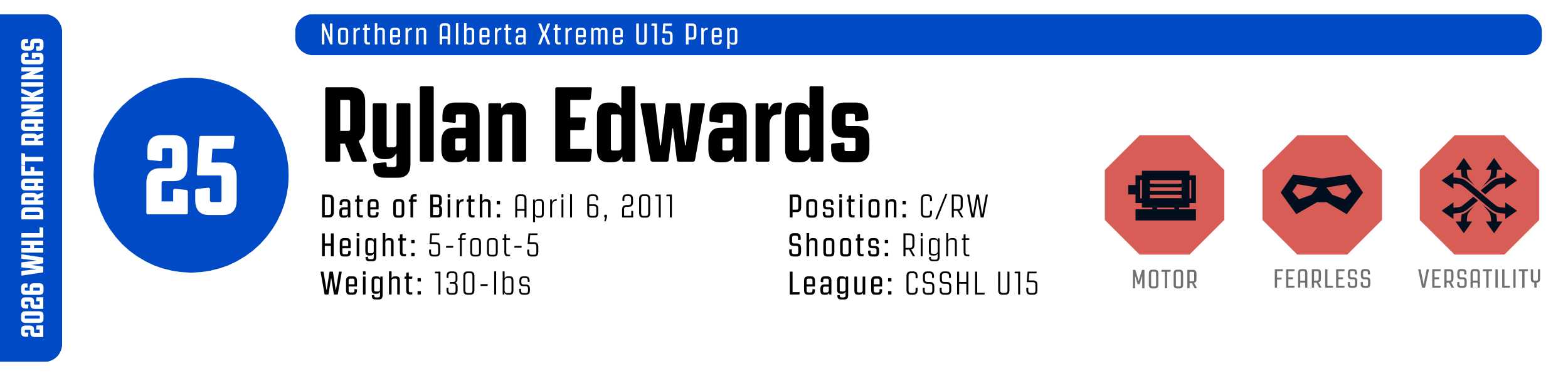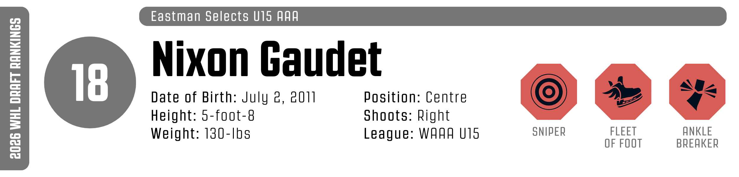 While his high-tempo style can occasionally outpace his support, his clutch instincts are undeniable. He’s a resilient worker who backchecks with ferocity and relishes physical engagement. With that skill set, he’s easy to project to the WHL, likely as a top-six forward.