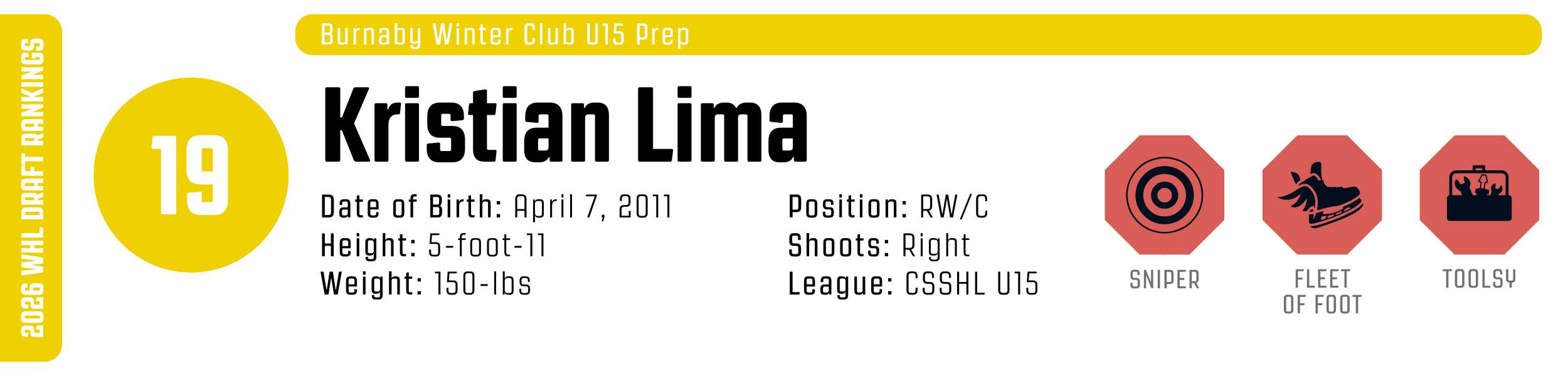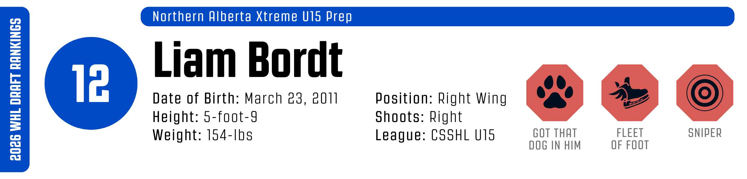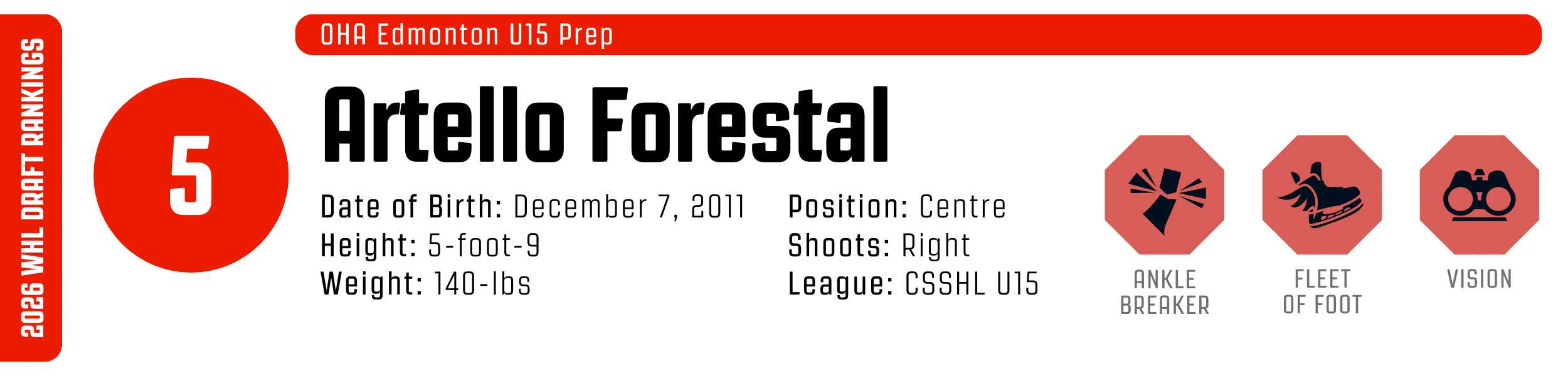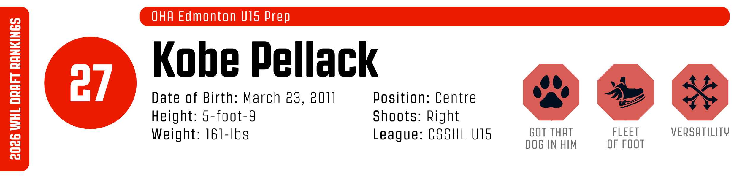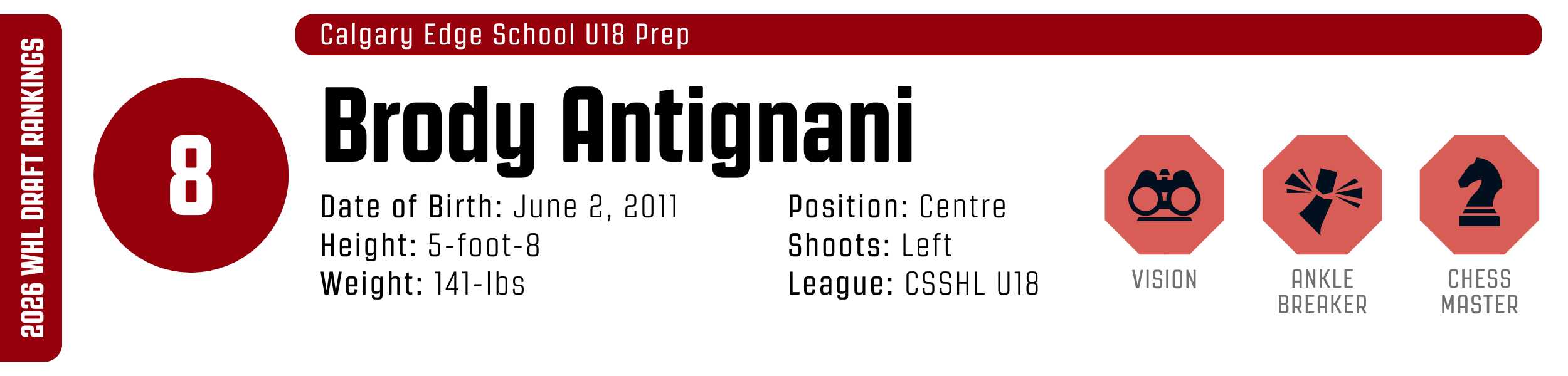 While his high-tempo style can occasionally outpace his support, his clutch instincts are undeniable. He’s a resilient worker who backchecks with ferocity and relishes physical engagement. With that skill set, he’s easy to project to the WHL, likely as a top-six forward.