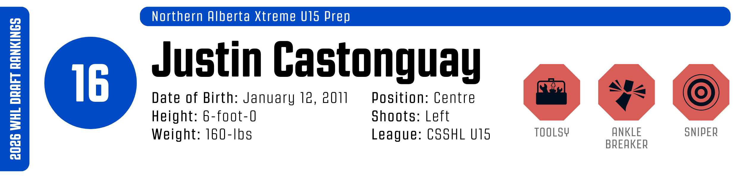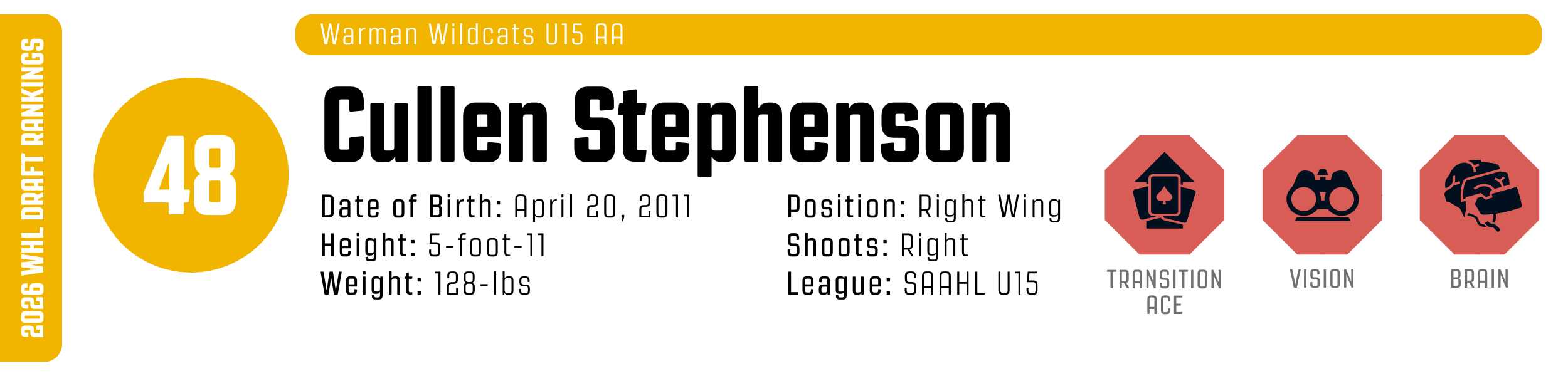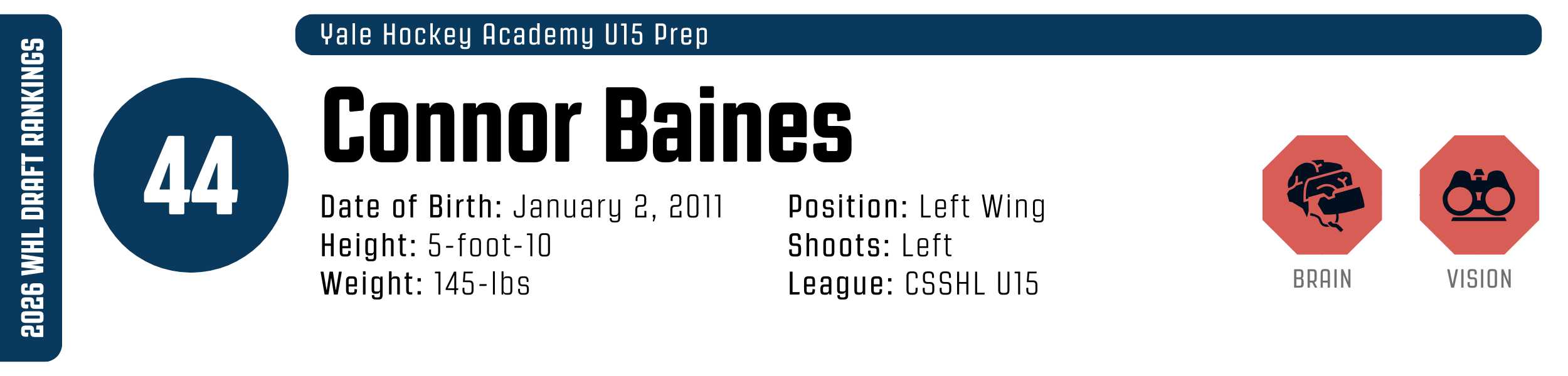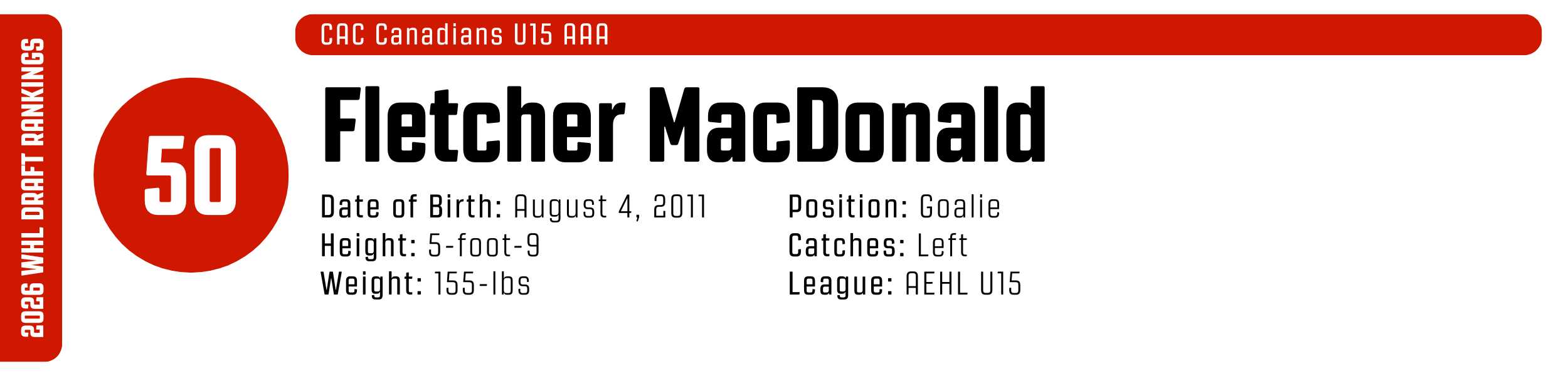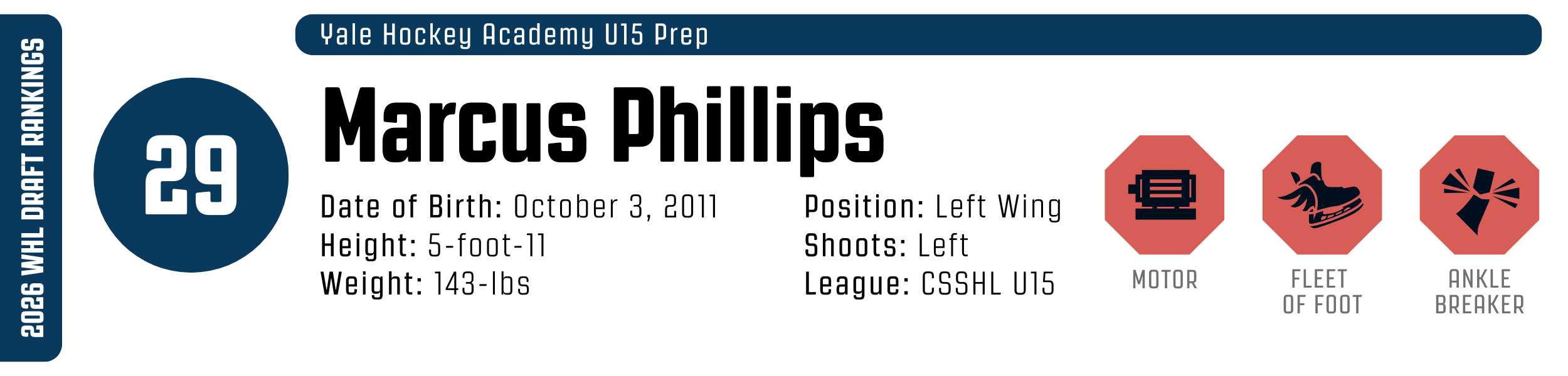While his high-tempo style can occasionally outpace his support, his clutch instincts are undeniable. He’s a resilient worker who backchecks with ferocity and relishes physical engagement. With that skill set, he’s easy to project to the WHL, likely as a top-six forward.