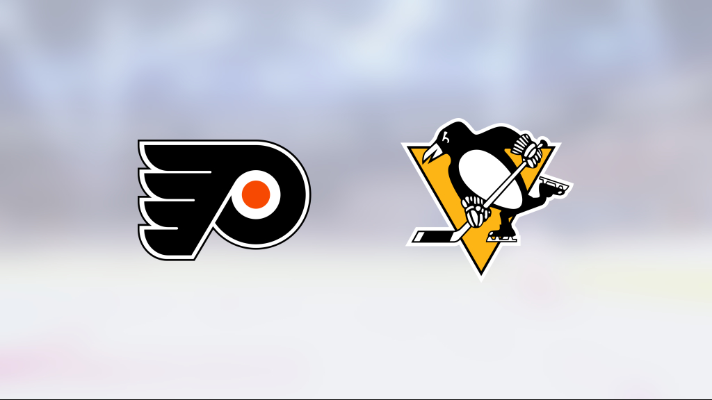 Philadelphia Flyers improves to 25–43–11, while Pittsburgh Penguins drops to 45–24–11.