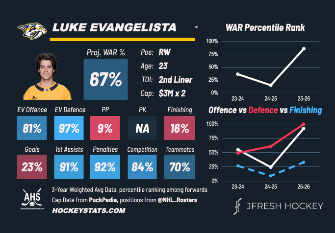 Luke Evangelista could be scoring more, but based on possession metrics, he’s one of the very best play-drivers in the NHL.
