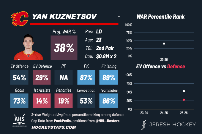 A few months ago, Yan Kuznetsov would have been left completely off this list. The Flames put him on waivers after a couple of stagnant AHL seasons and a quiet training camp. Sometimes, all a player needs is an opportunity.