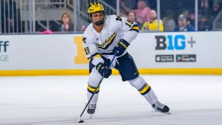 Always fast to adjust his angles but conservative in the magnitude of the adjustments, Muszelik thrives when he’s able to play a game of predictions. He’d rather wait out an oncoming breakaway and stay on his skates to take away the top of the net, utilizing quick lower-body movement to turn away lower shots with his pads from his knees once he’s figured out where the puck is headed. -EliteProspects 2022 NHL Draft Guide