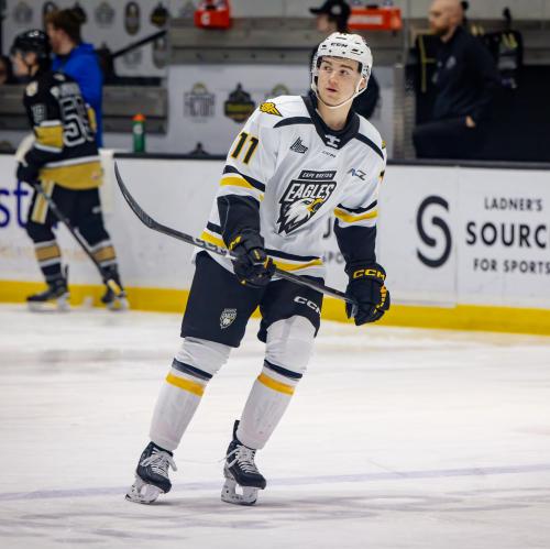 Shooting the puck is what Guy does best. His stick bends to its limit and the disc flies off of it without much warning and a lot of power. He’s a power forward who works for his goals. He drives at the boards, engages opponents, wins the puck from them, and passes it out of traffic. -EliteProspects 2024 NHL Draft Guide