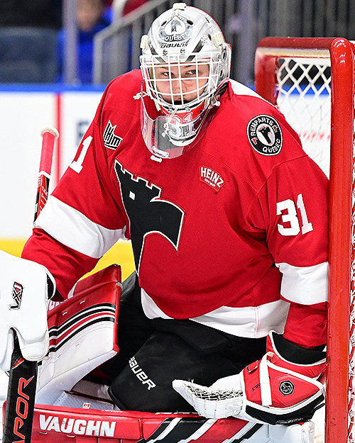 One of the biggest goalies in the draft, Louis-Antoine Denault is a monster in the crease at 6-foot-6. Because of this and his length, Denault is rarely beaten along the ice. There’s a slight hole in the five-hole, but, in general, his pads seal things up. -EliteProspects 2025 NHL Draft Guide