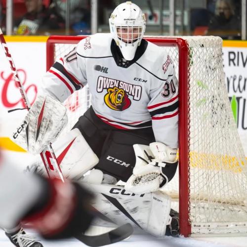 Trenten Bennett is a monster in the crease. He’s listed at 6-foot-6, but some places have him listed as tall as 6-foot-8. Either way, he’s one of the biggest and most-imposing looking goalies in this draft, and it almost looks like he has to squat to get his entire frame into the net. -EliteProspects 2025 NHL Draft Guide